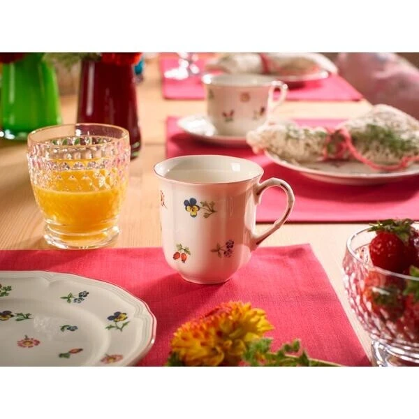 Die Kollektion Petite Fleur verleiht der Tafel ein romantisches und sommerliches Flair. Die feinen floralen Verzierungen unterstreichen die grazile Formensprache des Designs. Qualität von Villeroy & Boch seit 1748. Vom süßen Kakao bis zum belebenden Kaffee am Morgen reichen Sie im praktischen, charmant geblümten Becher von Petite Fleur. Gefertigt aus hochwertigem Premium Porcelain. Natürlich geeignet für Spülmaschine und Mikrowelle. Erleben Sie die Geschirr-Kollektion mit charmantem Blümchendekor von Villeroy & Boch.