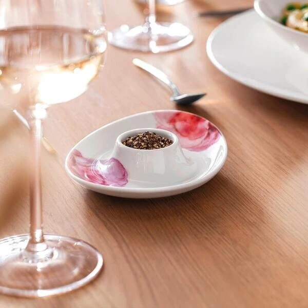 Der Eierbecher aus der Serie Rose Garden von Villeroy & Boch besticht durch seinen verführerischen Charme im Landhausstil. Die sanften Aquarelltöne, die sich über das Porzellan schwingen, kreieren eine gemütliche Atmosphäre, die an den Vintage-Look erinnert.