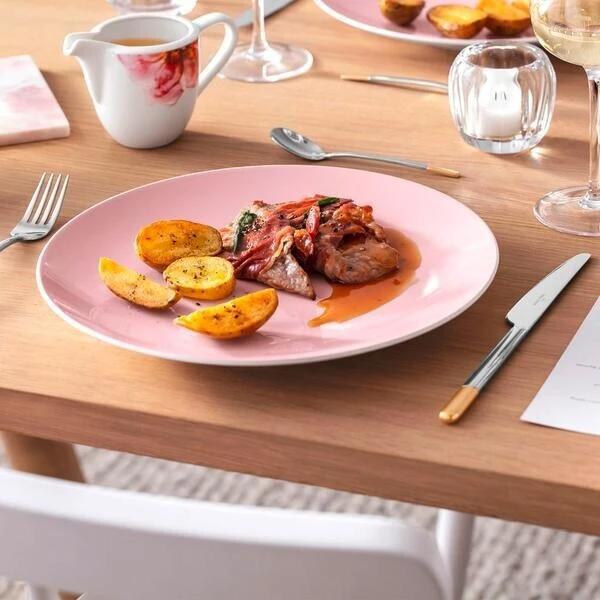 Der feminine Speiseteller aus der Kollektion Rose Garden von Villeroy & Boch besticht durch sein sanftes Schimmern in Rosa. Der brillierende Glanz eignet sich hervorragend zum Inszenieren Ihrer Speisen in einem ruhigen, leicht wirkenden Arrangement.
